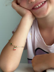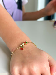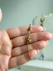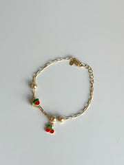 Sweeten your style with our 14k Solid Gold Strawberry and Cherry Baby Paper Clip Bracelet. This charming bracelet combines playful fruit motifs with sophisticated design, featuring delicate strawberry and cherry charms artfully spaced along a sleek paper clip chain.