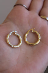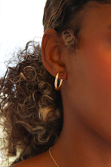 Elevate your style with these minimalist, real gold earrings that combine stripped elegance with a modern edge. Designed with a secure latch-back closure, these timeless hoops bring a refined, understated charm to any look, perfect for both everyday wear and special occasions.